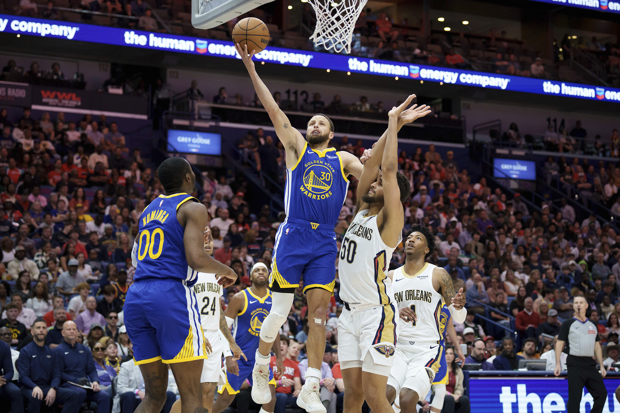 比赛开始,鹈鹕率先发力打出14-2的开局,勇士不断追分,首节鹈鹕领先7分,次节巴特勒和波斯特相继命中三分,库明加罚球反超,比分交替领先,半场战罢勇士50-53落后鹈鹕。易边再战,勇士内外开花一度取得8分优势,末节勇士频频冲击篮筐,将分差拉开到两位数,并将优势保持到最后。最终,勇士111-95力克鹈鹕。